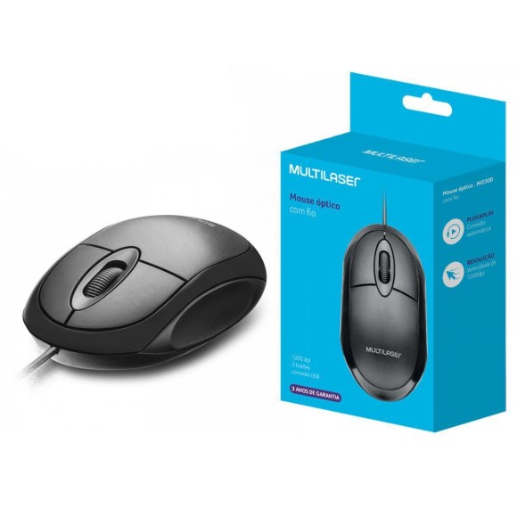 Mouse optico com fio full black 1200 dpi - Multilaser - USB