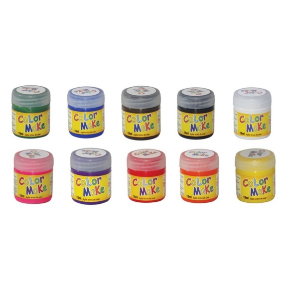 As Tintas Liquidas Colormake sao a base de agua, possuem secagem rapida e total. Proprios para a pele sao ideais para serem utilizadas em festas tematicas, fantasias, desfiles, apresentacoes de danca, eventos em geral.